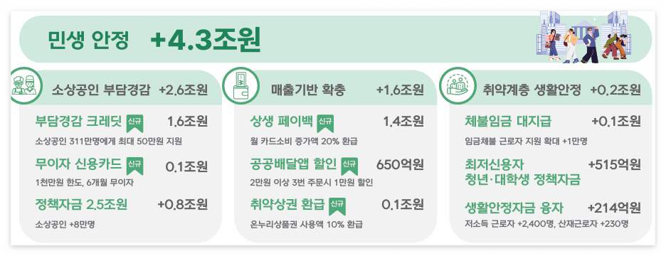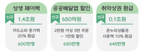| 상생페이백 | 소비 증가분의 20% 환급(온누리상품권) | 카드 소비자 대상 | 13,700억 원 |